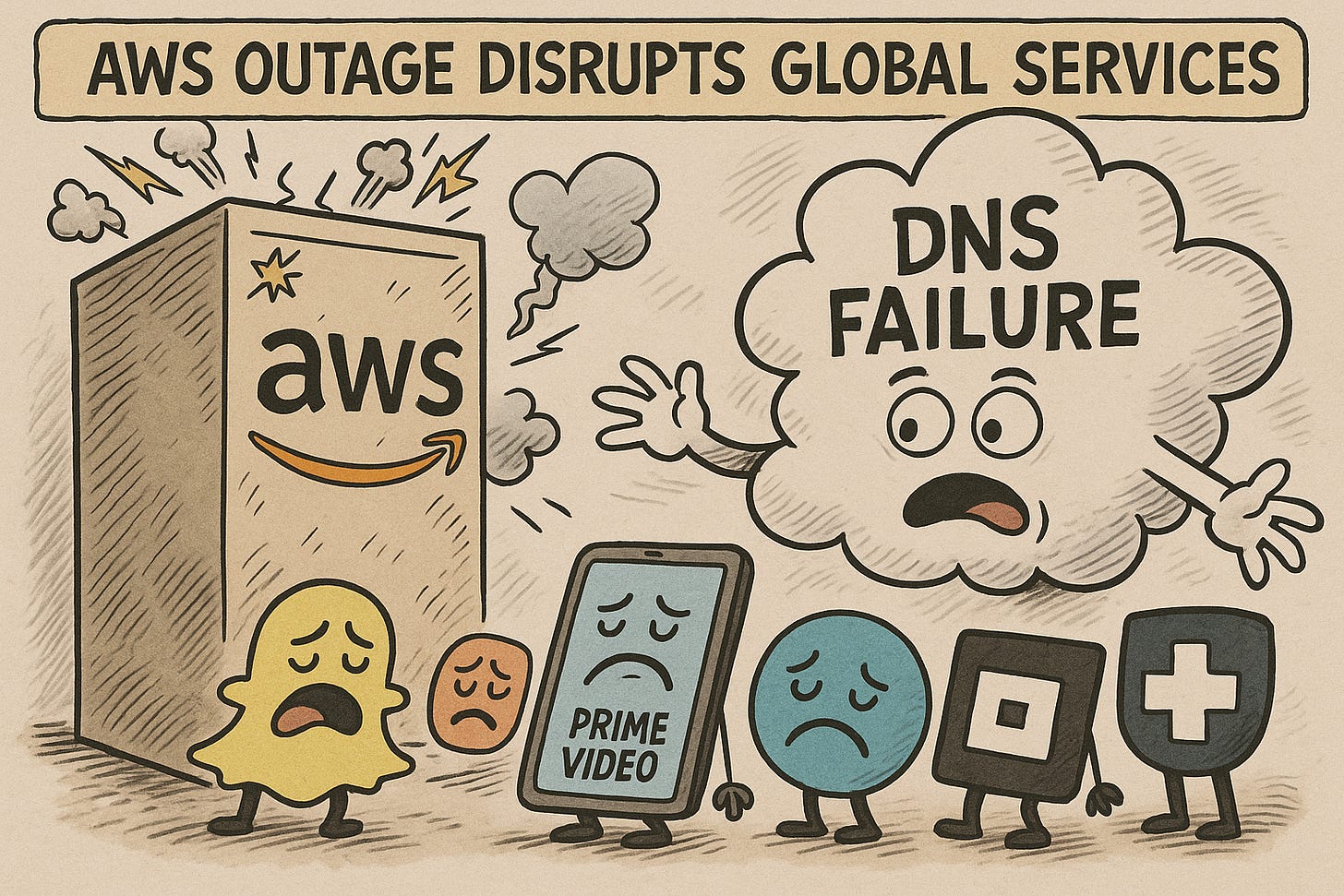 Massive AWS Outage Disrupts Global Services: DNS Failure in US-East-1 Hits Snapchat, Prime Video, Canva, and More