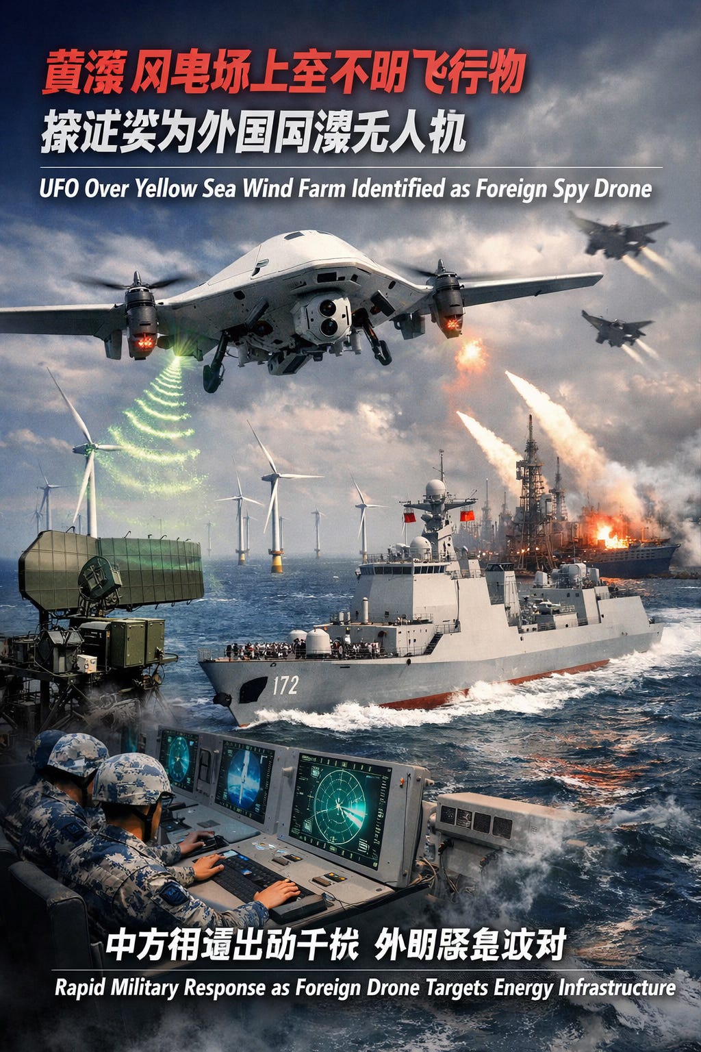 Bottom Line Up Front (BLUF): Chinese state media reports that an unidentified flying object (UFO) spotted over a strategic offshore wind farm in the Yellow Sea has been identified as a foreign surveillance drone. The incident triggered a rapid military response, including radar jamming and naval deployment, with authorities framing it as an act of foreign espionage targeting critical energy infrastructure.