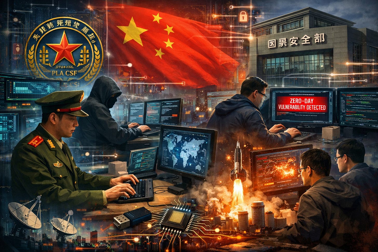 Bottom Line Up Front (BLUF): China has built a sophisticated cyberwarfare ecosystem that combines state-employed military hackers with civilian security researchers, enabling both espionage and offensive operations. The newly formed People’s Liberation Army Cyberspace Force (PLA CSF) and agencies like the Ministry of State Security are leveraging a vast pool of domestic vulnerability researchers, strict reporting laws, and private partnerships to assemble a strategic stockpile of zero-days—capabilities that could be used to disrupt foreign military and civilian infrastructure in times of conflict.